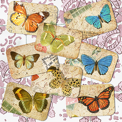 Butterfly Junk Journal Labels, Digital Download, Printable, Vintage Butterflies, Ephemera Pack of 8 Labels
