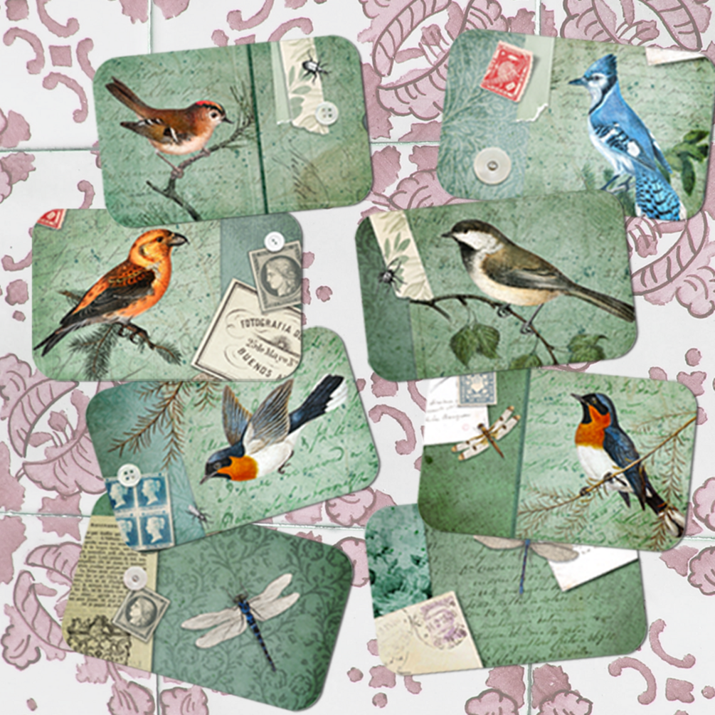 Bird Junk Journal Labels, Digital Download, Printable, Vintage Cactus, Ephemera Pack of 8 Labels